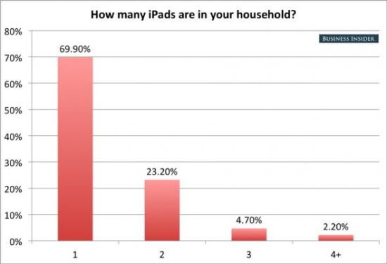 The IPad amount that has in the user home of 30% is more than, the user proportion that has an IPad only is 69.90% , the user proportion that has 4 above IPad is 2.20% .